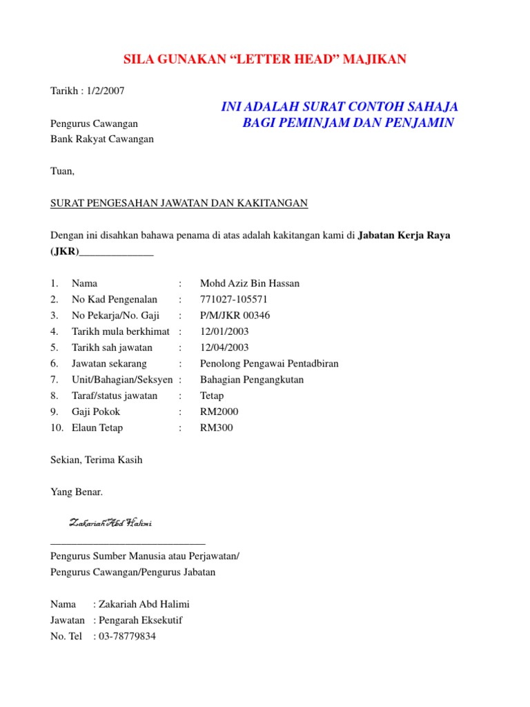 Contoh surat kepala desa tentang penetapan pengurus gapoktan. Contoh surat perjanjian pengurus organisasi. Jika tujuan surat pengajuan surat ke putusan untuk pengangkatan pengurus baru maka lampirkan daftar pengurus. Pengurus xxxxxxx sdn bhd poskod, batu pahat, johor. Semoga dengan perkongsian portal malaysia mengenai contoh surat pengesahan majikan dan jawatan ini dapat membantu serta menjadi.